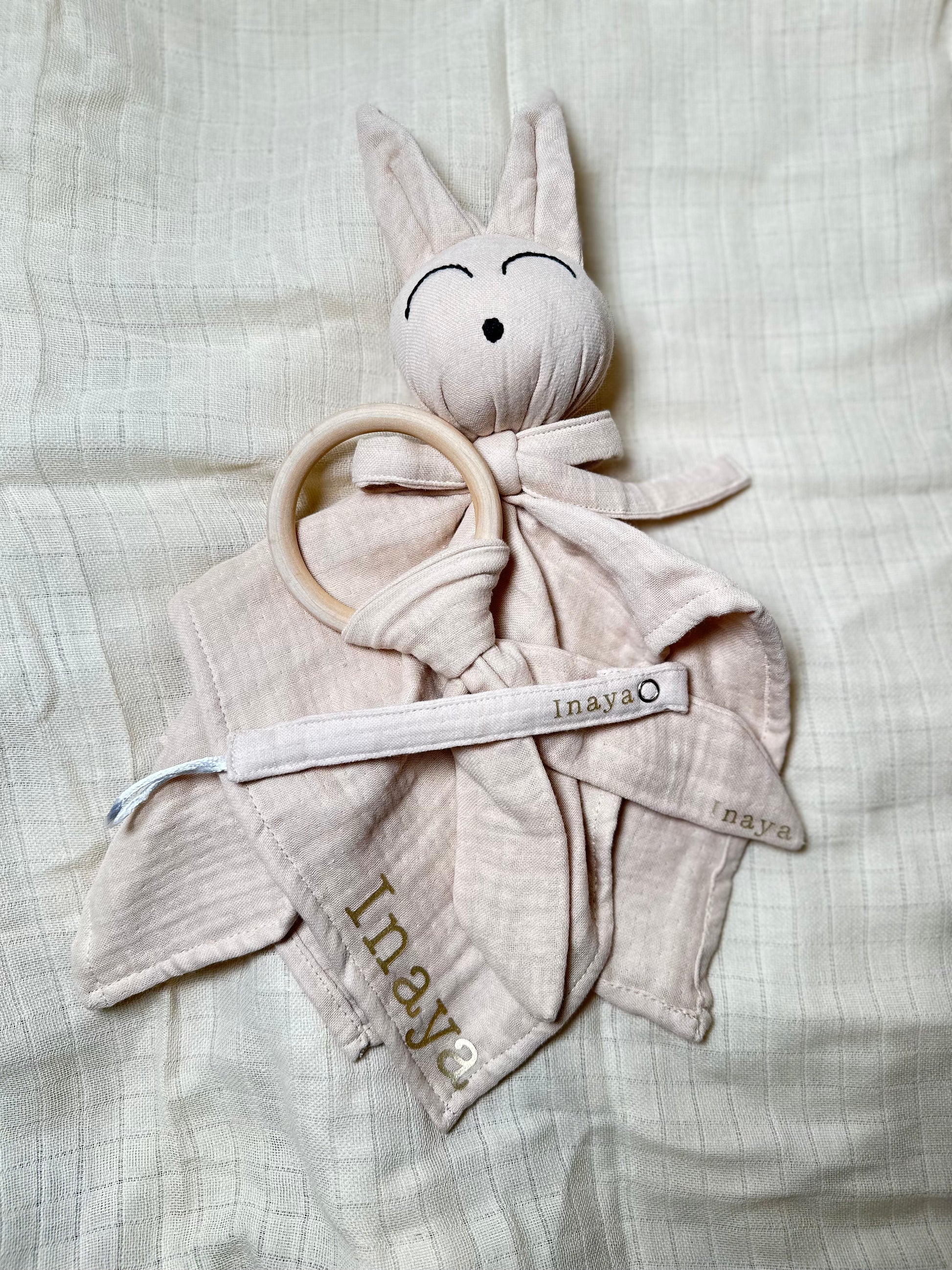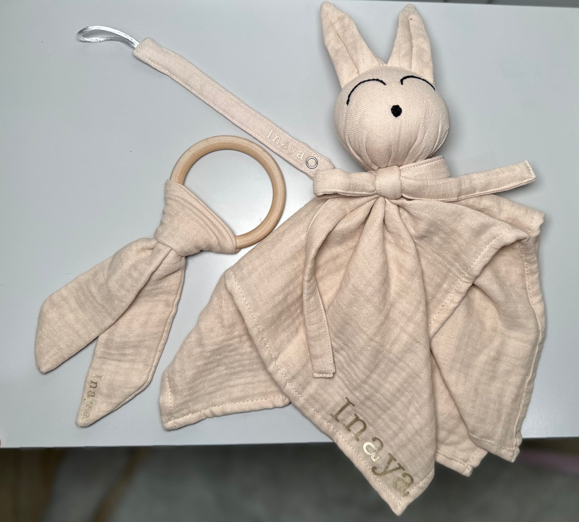 Bebeğiniz için özel olarak tasarlanmış kişiselleştirilmiş pamuk gazlı uyku arkadaşı setimizi keşfedin! Yumuşacık ve nazik dokusu ile bu set, minik yavrunuza hem konfor hem de sevgi dolu bir deneyim sunuyor.